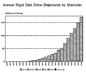 Figure 3: Annual rigid disk drive shipments by diameter.